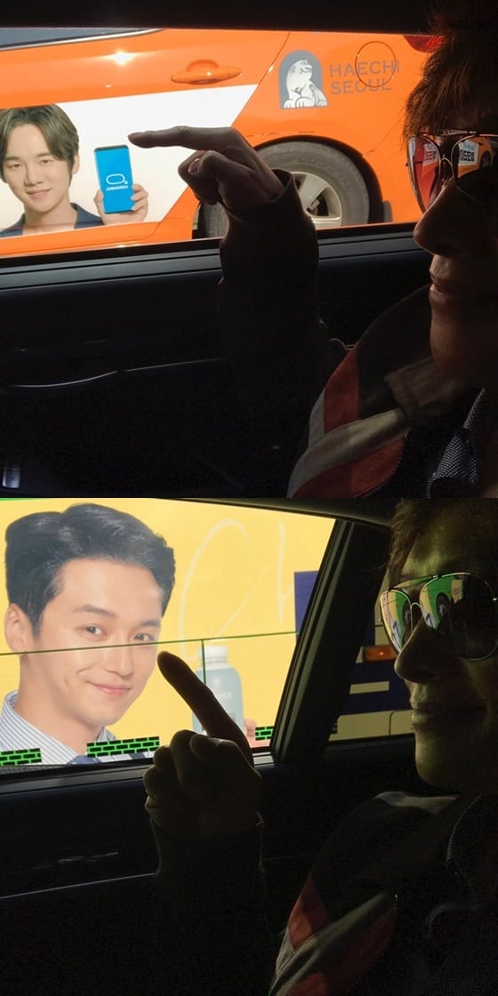 공개된 사진 속 이병헌은 유연석과 변요한의 광고사진이 부착된 것을 발견하고 인증샷을 찍었다. 특히 지난달 종영한 케이블채널 tvN 드라마 '미스터 션샤인' 속 유진초이 말투로 자신의 뒤를 밟은 것이냐고 적어 보는 이들의 시선을 끌었다.
