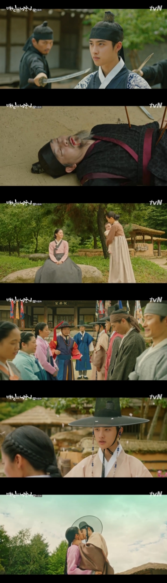 30일 오후 방송된 케이블채널 tvN 월화드라마 '백일의 낭군님'(극본 노지설, 연출 이종재) 마지막회에서 이율(도경수 분)과 윤이서(남지현 분)은 서로 키스를 하며 해피엔딩을 맞이했다.