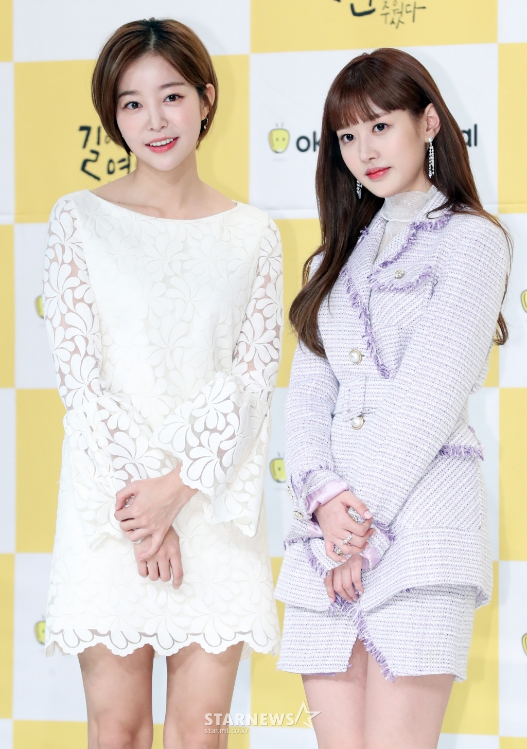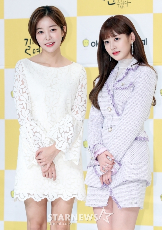탤런트 김가은, 그룹 구구단 미미가 1일 오후 서울 영등포구 타임스퀘어 아모리스홀에서 열린 옥수수 드라마 '나는 길에서 연예인을 주웠다' 제작발표회에서 포즈를 취하고 있다.