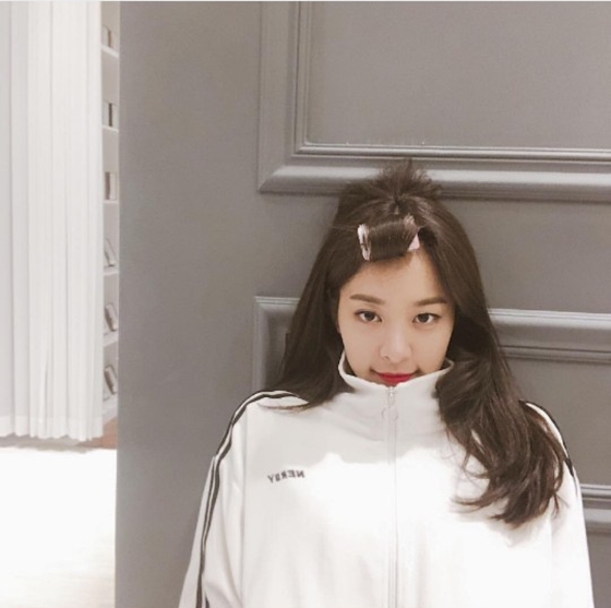 사진 속 설인아는 방문 앞에서 자세를 취했다. 헤어롤로 완성한 깜찍한 매력으로 시선을 모았다.