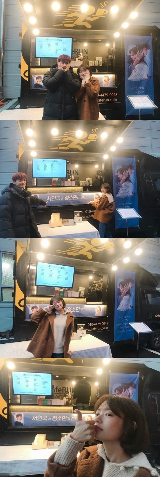 사진 속 정소민은 커피차 앞에서 자세를 취했다. 서인국과 함께 다정한 모습을 보이기도 했다.