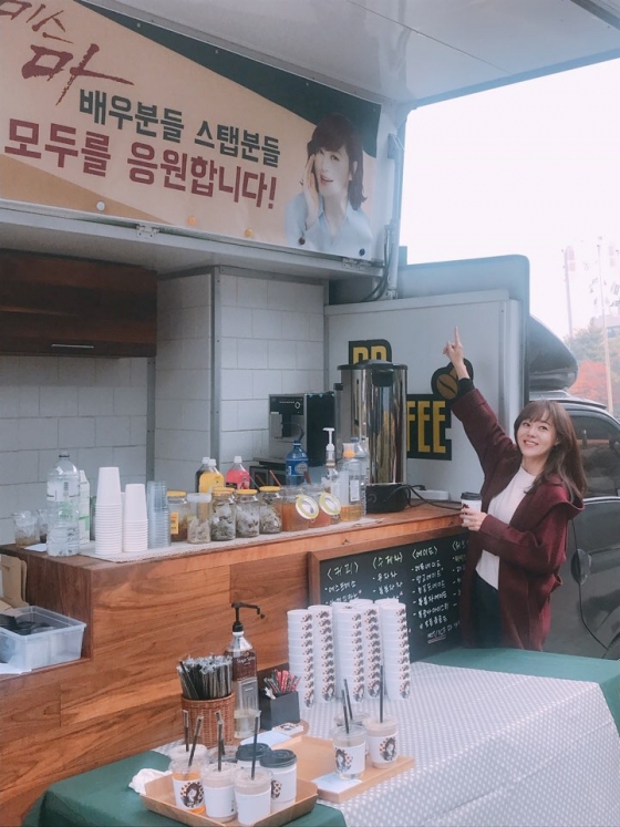 17일 오전 SBS에 따르면 지난 16일 특별기획 '미스 마, 복수의 여신'(극본 박진우, 연출 민연홍·이정훈)의 촬영장에 김혜수의 커피차 선물이 도착했다.
