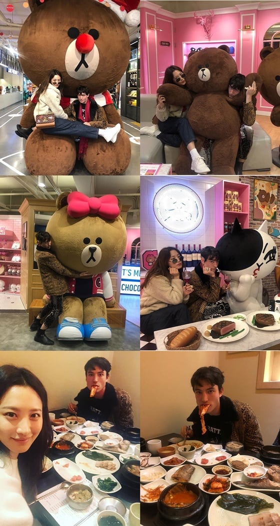 또 수현은 에즈라 밀러와 라인 프렌즈샵을 찾은 듯 커다란 브라운과 재미있는 포즈를 취하며 찍은 사진을 줄줄이 인스타그램에 올렸다.