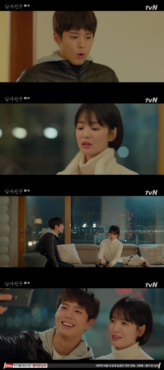'남자친구'에서 송혜교는 남기애를 향해 지금껏 쓸모있는 인생 살았으니 앞으로 자신의 인생을 살겠다고 선언했다. 그러면서 박보검과 만나 박보검을 걱정했다. 특히 송혜교는 박보검 앞에서 좋아하는 사람 이유없이 욕 먹게 하는 사람이 아니라고 밝혔다. 박보검의 의미심장한 말을 듣고 의아해했던 송혜교였지만 이유를 알았다. 바로 박보검이 속초 호텔로 인사 발령이 났기 때문. 송혜교는 박성근을 즉각 호출했다. 앞으로 송혜교가 박보검을 위해 어떤 행동을 할지 기대가 쏠린다.