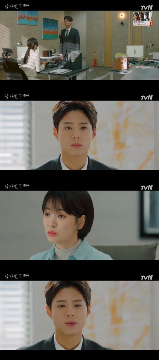 20일 오후 방송된 케이블채널 tvN 수목드라마 '남자친구'(극본 유영아, 연출 박신우, 제작 스튜디오드래곤·본팩토리)에서는 김진혁(박보검 분)이 차수현(송혜교 분)에게 보내달라고 말을 하는 모습이 그려졌다.