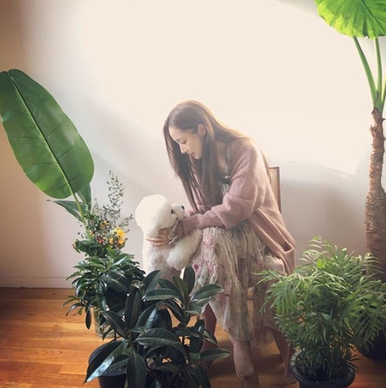 배우 박민영이 반려견 레옹과 함께 몽환적 분위기를 보여줬다.