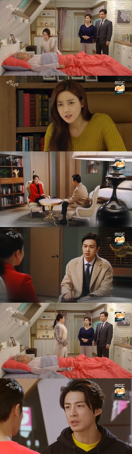 4일 오후 방송된 MBC 일일드라마 '비밀과 거짓말'(극본 이도현, 연출 김정호·김용민)에서는 신화경(오승아 분)이 미성그룹 회장 오상필(서인석 분)을 납치할 계획을 오연희(이일화 분)에게 말한 윤재빈(이중문 분)의 모습이 그려졌다.