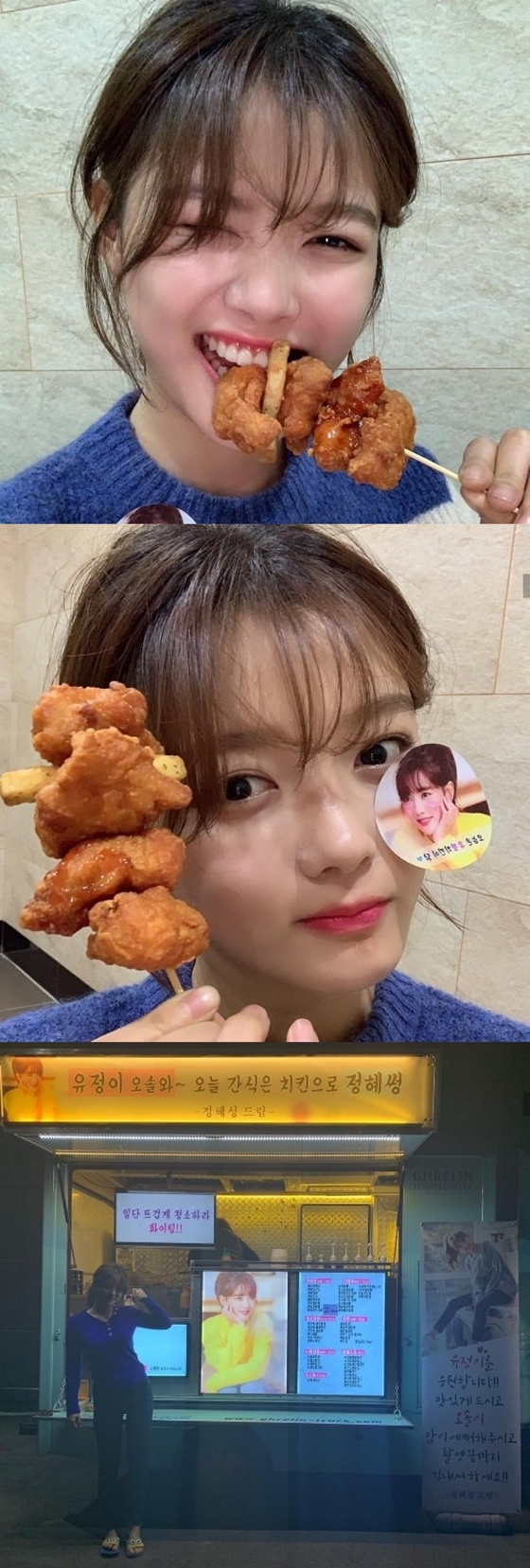 배우 김유정이 정혜성이 보내준 치킨차에 감사의 메시지를 전했다.