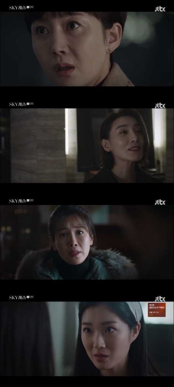 4일 오후 방송된 JTBC 금토드라마 '스카이캐슬'(극본 유현미, 연출 조현탁)에서 한서진(염정아 분)이 김주영(김서형 분)을 의심하는 장면이 그려졌다.