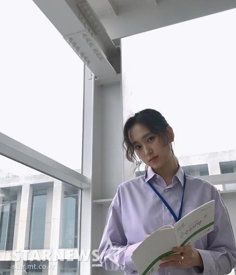 공개된 사진 속 류혜영은 촬영 현장서 포즈를 취한 모습이다. 그는 단정하고 세련된 셔츠를 입고 한 손에는 '은주의 방' 대본을 들고 있다.