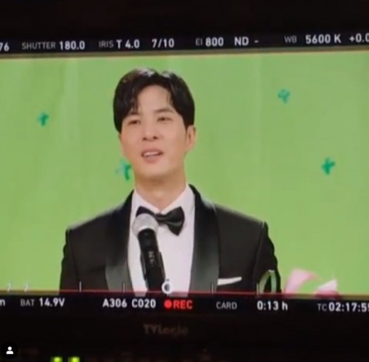 함께 공개된 사진은 '톱스타 유백이'의 마지막 촬영신인 시상식에서 김지석(유백)이 진심 어린 수상 소감을 전하는 장면 캡처이다.