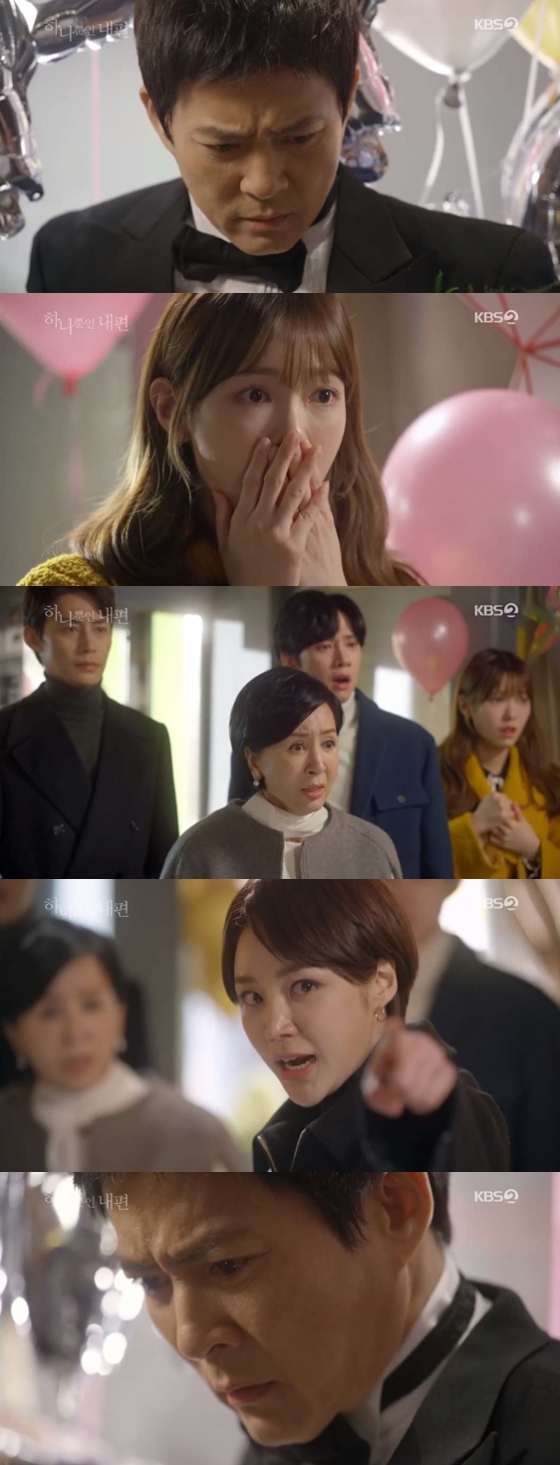16일 오후 방송된 KBS 2TV 주말드라마 '하나뿐인 내편'(극본 김사경, 연출 홍석구)에서 장다야(윤진이 분)이 강수일(최수종 분)과 나홍주(진경 분)의 결혼식에 찾아가 난동을 부렸다.