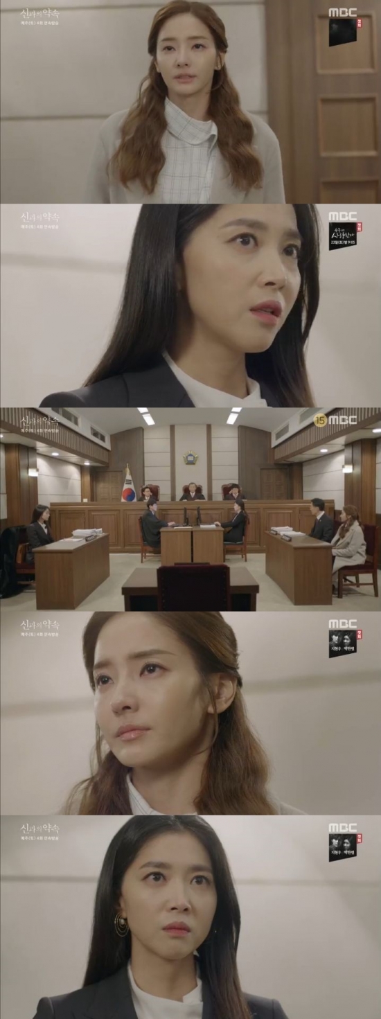 16일 방송된 MBC 주말드라마 '신과의 약속'(극본 홍영희, 연출 윤재문)에서 서지영(한채영 분)과 우나경(오윤아 분)은 법정에서 만났다.