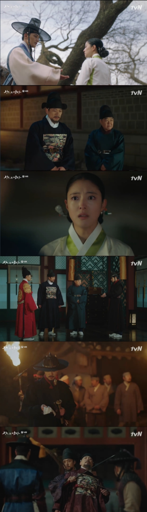 도승지 이규(김상경 분)는 부원군(왕후의 아버지) 유호준(이윤건 분)이 암살됐다는 소식을 하선과 왕후 유소운(이세영 분)에게 전했다. 이를 들은 유소운은 크게 슬퍼했다. 하선은 크게 분노했고, 호위무관 장무영(윤종석 분)에게 진평군의 집을 수색할 것을 명했다.