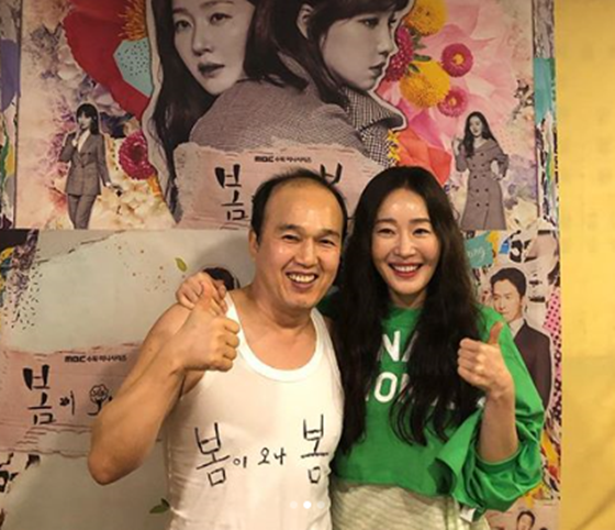 엄지원은 22일 자신의 인스타그램에 "'봄이 오나 봄' 종방연. 봄봄을 사랑해주신 한 분 한 분 잊지 않을게요"라는 글과 함께 김광규와 함께 찍은 사진을 공개했다.