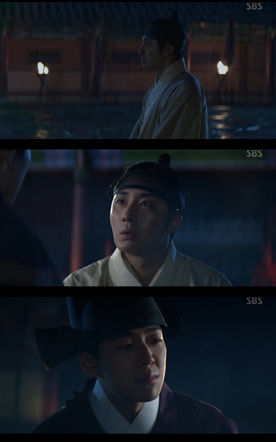 이금은 쏟아지는 비를 맞으며 한밤중에도 석고대죄를 이어갔다. 이 때 이금의 앞으로 한 사람이 다가왔다. 그 사람은 이금의 이복동생인 연령군 이훤(노영학 분)이었다.