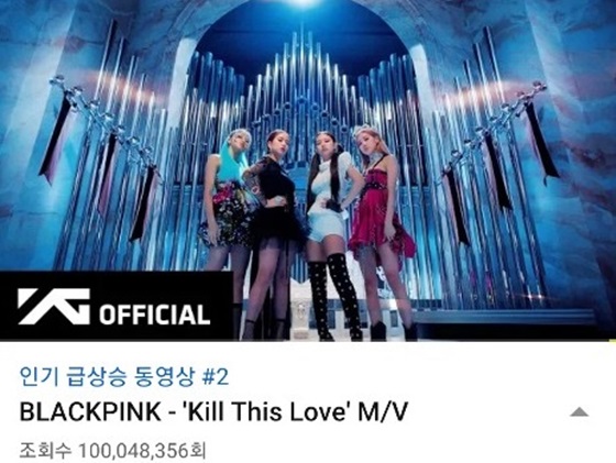 걸그룹 블랙핑크의 '킬 디스 러브'가 전세계 유튜브 사상 최단 기록으로 뮤직비디오 1억뷰를 돌파하는 영광을 안았다.