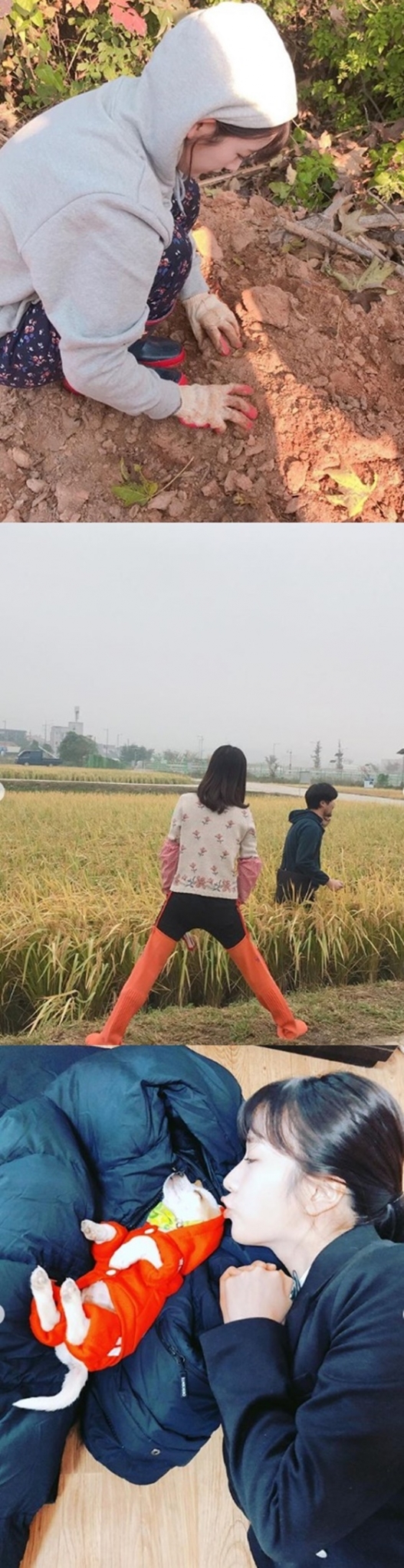 공개된 사진 속 보미는 목장갑을 낀 채 밭일을 하거나 긴 장화를 신고 포즈를 취하는 등 열정적인 모습을 보였다. 또한 잠들어 있는 새끼 강아지에 뽀뽀를 하며 러블리함을 드러내기도 했다.