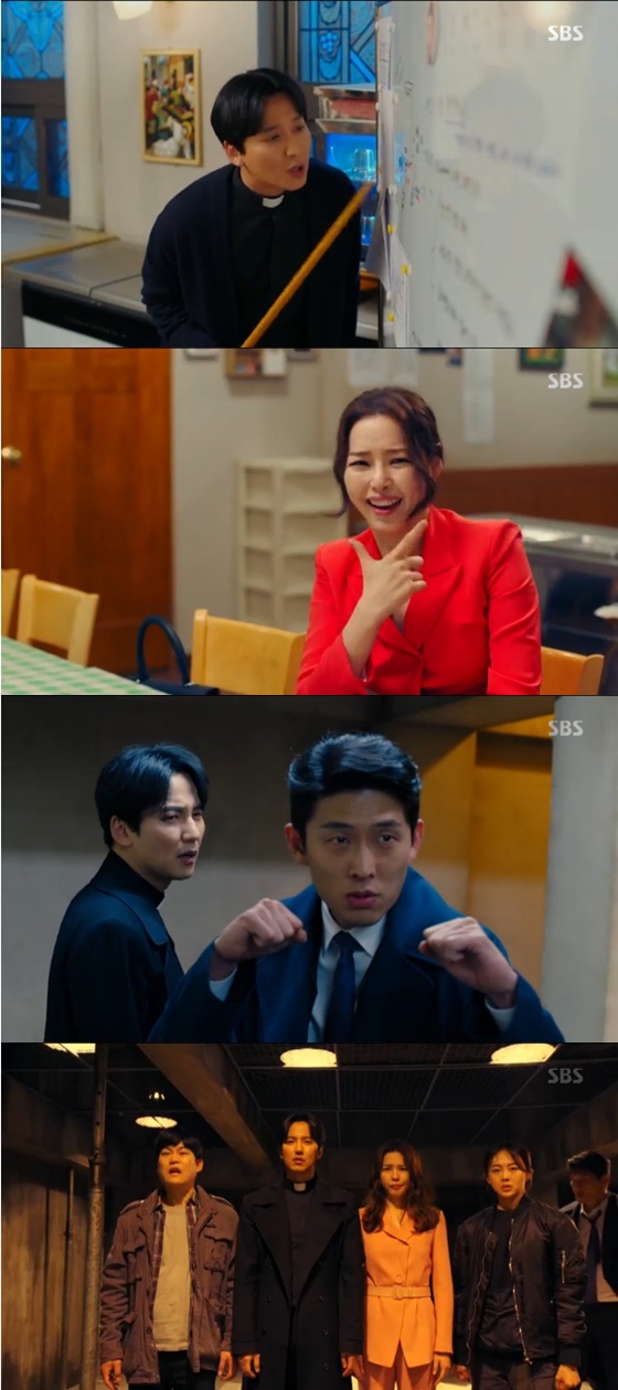 12일 오후 방송된 SBS 금토드라마 '열혈사제'(극본 박재범, 연출 이명우, 제작 삼화네트웍스)에서는 구담 어벤져스 멤버들과 황성범(고준 분)이 비밀 금고 안에 갇히는 모습이 그려졌다.