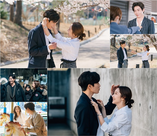 먼저 공개 된 사진에는 벚꽃 나무 아래 나란히 서서 활짝 미소 짓는 박민영-김재욱의 모습이 시선을 사로잡는다. 박민영은 김재욱의 귀 뒤에 벚꽃을 꽂으며 장난을 치고 있다. 이에 김재욱은 고개를 살짝 숙이고 박민영에게 키를 맞춰주고 있어 설렘을 유발한다. 또한 두 팔을 벌리고 있는 박민영과 이를 사랑스럽게 바라보는 김재욱의 모습이 현실 케미를 폭발시킨다.