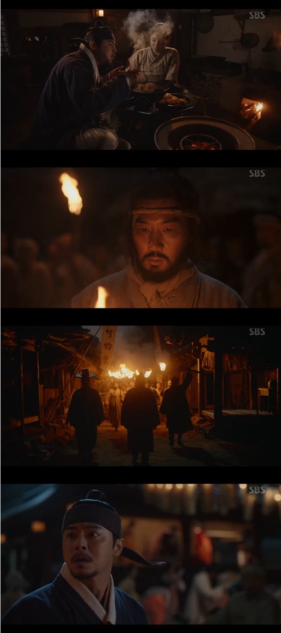 이날 방송에서 백이강(조정석 분)은 별칭으로 첫 등장했다. 그는 사람들을 협박하고, 매질을 하는 등의 일을 했다. 백이강은 "다들 똑똑히 봐둬. 언 놈이든 토달면 이렇게 된다"고 말했다.