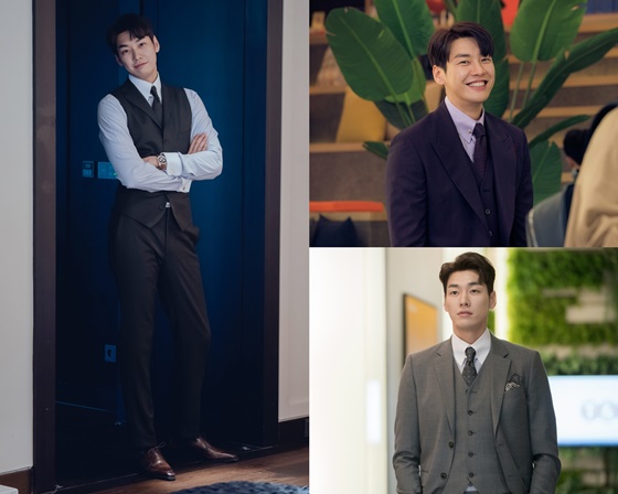 공개된 사진 속에는 벌써부터 눈을 호강시키는 도민익(김영광 분)표 슈트 룩이 포착돼 기대지수를 한층 상승시킨다. 그는 머리부터 발끝까지 스리피스 슈트를 완벽하게 소화한 만찢남(만화를 찢고 나온 남자) 피지컬과 비주얼로 심쿵을 유발한다.