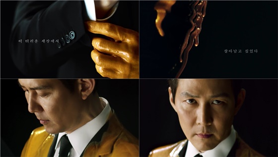 포스터와 함께 공개된 티저 영상은 황금빛 액체와 검정 슈트의 색감 대비가 긴박하게 진행되는 배경 음악 속에서 더욱 생생하게 담겼다. 셔츠의 소매를 다듬는 와중에도 그의 온몸을 타고 흘러내리는 금빛 향연이다.