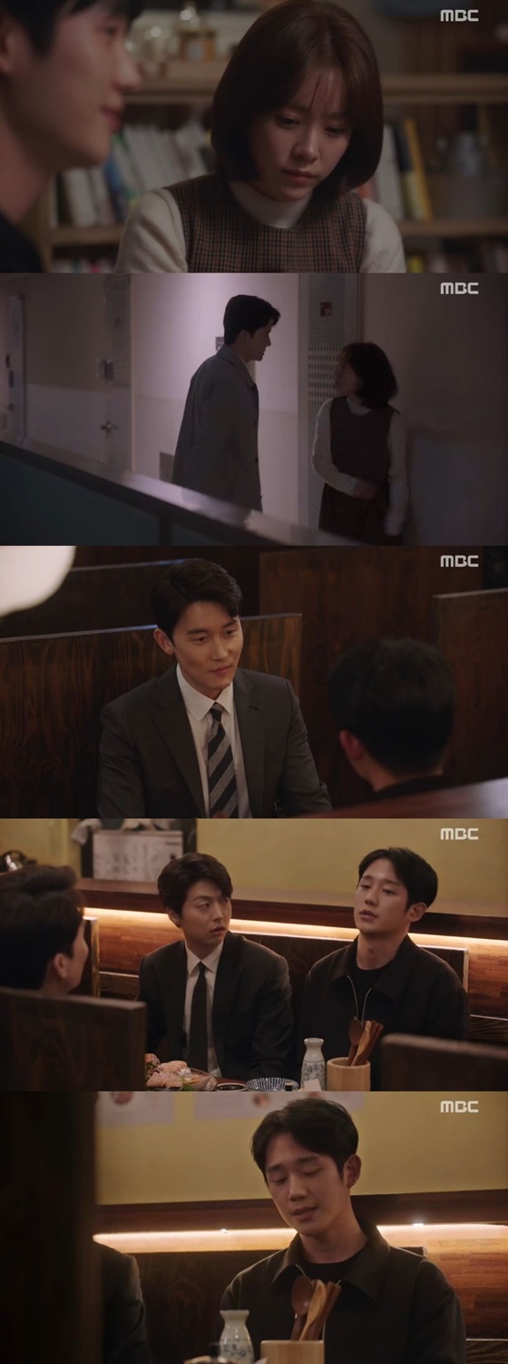 6일 오후 방송된 MBC 수목드라마 '봄밤'(극본 김은, 연출 안판석)에서는 아슬아슬한 관계를 이어가는 권기석(김준한 분), 이정인(한지민 분), 유지호(정해인 분)의 모습이 담겼다.