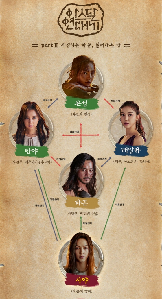 '아스달 연대기'가 'Part2 뒤집히는 하늘, 일어나는 땅' 새로운 인물 관계도를 공개했다.
