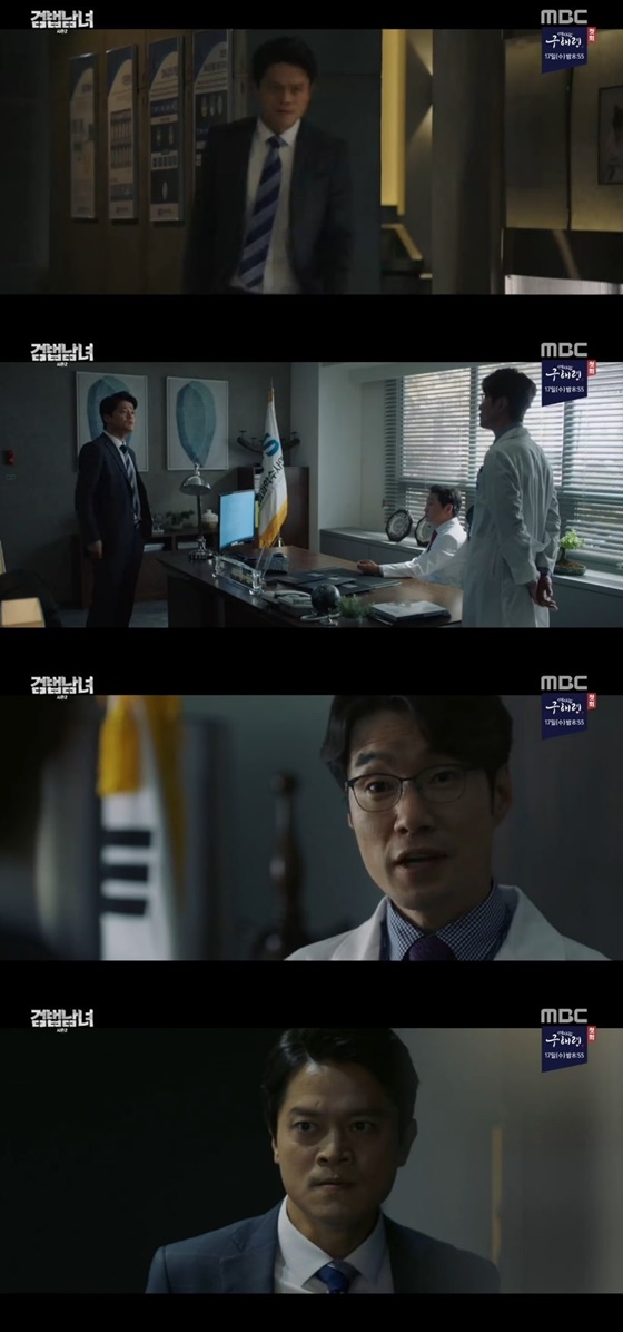 9일 오후 방송된 MBC 월화드라마 '검법남녀 시즌2'(극본 민지은·조원기, 연출 노도철·한진선)에서는 박중호(주진모 분)와 마도남(송영규 분)에게 황당함을 드러내는 갈대철(이도국 분)의 모습이 담겼다.