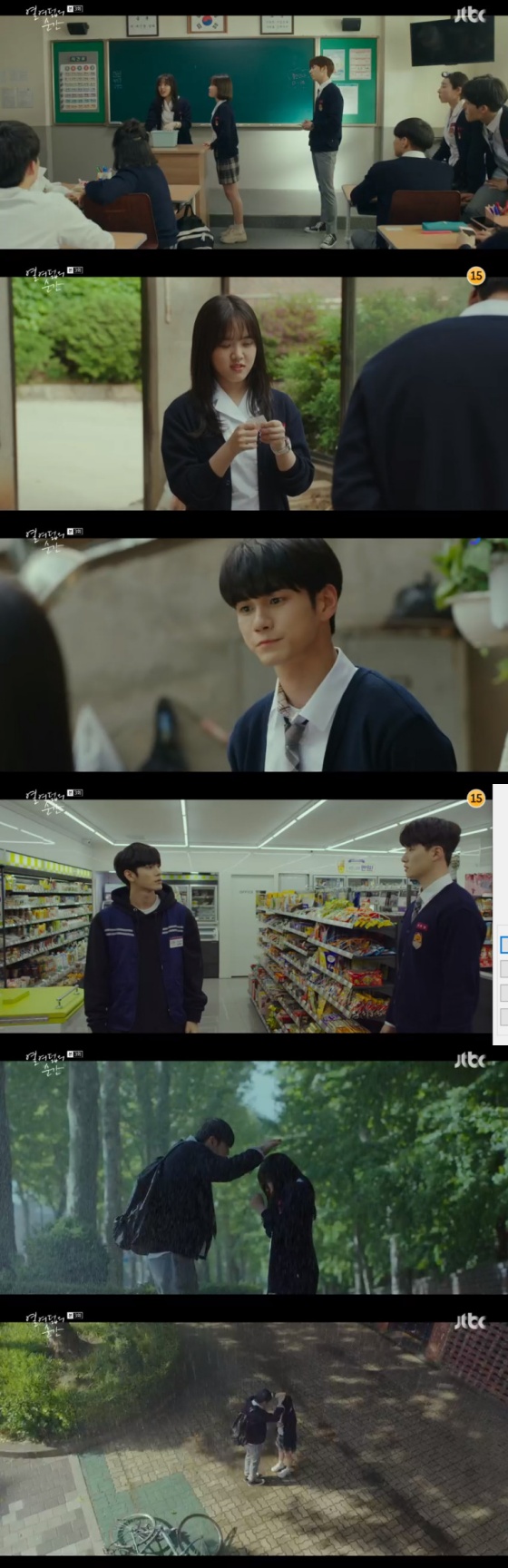 드라마 '열여덟의 순간'에서 옹성우가 김향기와 비 내리는 거리에서 마주쳤다.