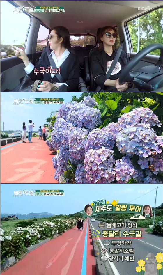 '배틀트립'에서 유혜리와 최수린이 수국을 보며 함께 제주도 여행을 했다.