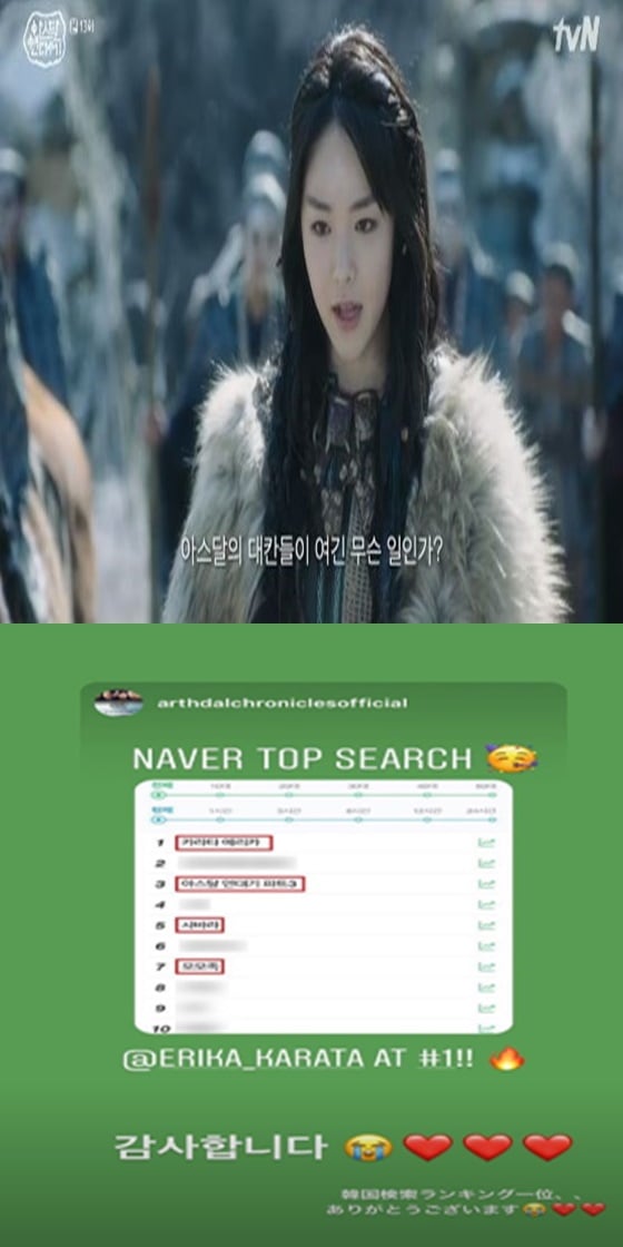 배우 카라타 에리카가 tvN '아스달 연대기'로 많은 관심을 받은 것에 감사를 표했다.