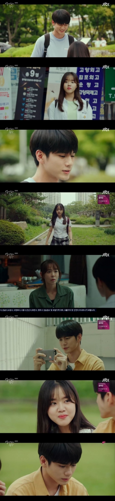 10일 오후 방송된 JTBC 월화드라마 '열여덟의 순간'(극본 윤경아, 연출 심나연)에서는 어쩔 수 없이 잠시 동안 떨어져 지내게 된 유수빈(김향기 분)과 최준우(옹성우 분)의 모습이 담겼다.
