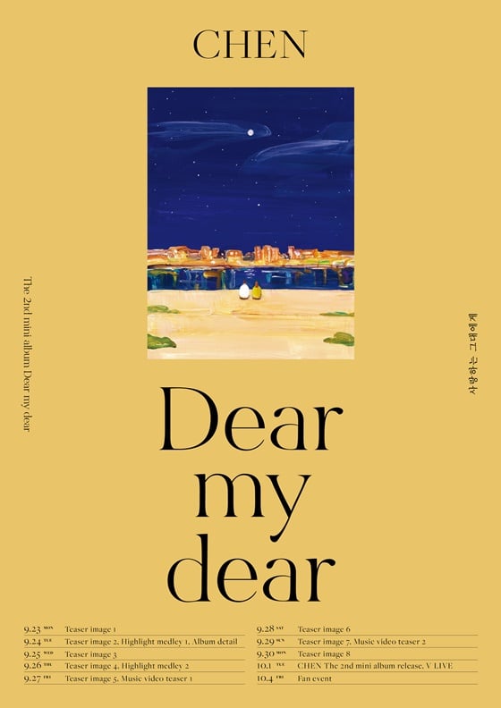 20일 낮 12시 각종 SNS 엑소 계정을 통해 10월1일 발매 예정인 첸의 두 번째 미니앨범 '사랑하는 그대에게'(Dear my dear)의 스케줄 포스터가 공개됐다.