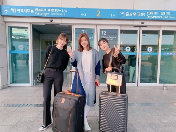 공개한 사진 속에는 '세상에서 제일 예쁜 내 딸'의 세 자매 강미선, 강미리, 강미혜로 출연한 유선, 김소연, 김하경이 인천공항 제1여객터미널 입구에서 포즈를 취하고 있는 모습이다.