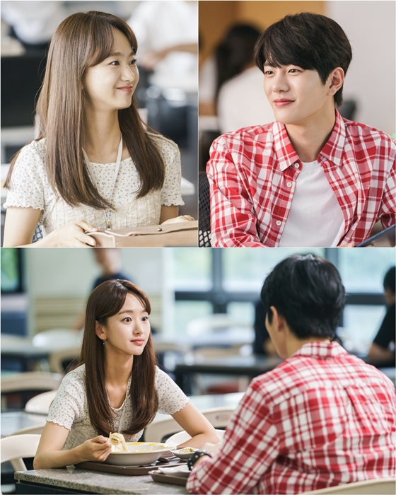 미란과 같은 수업을 듣게 된 지훈은 등장부터 남다른 미란을 보며 알 수 없는 미소를 지었다. 또한, 교내 벤치에서 신세 한탄 중인 그녀를 목격하곤 "쟤 너무 귀엽지 않니?"라고 묻는 친구 백영준(강유석 분)에게 "귀여워"라고 답했다. 여기서 피어난 소년미를 가득 담은 미소와 눈빛은 시청자들에게 또 다른 설렘을 선사 한 가운데, 12일 본방송에 앞서 공개된 스틸컷에는 또다시 마주친 미란과 지훈이 포착됐다.