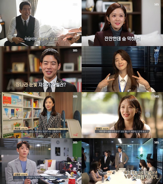 지난 22일 오후 방송된 SBS 새 월화드라마 'VIP'(극본 차해원, 연출 이정림) 스페셜 방송은 배우들이 직접 소개하는 캐릭터 매력부터 역대급 케미를 자랑하는 현장 분위기, 쫄깃하고 탄탄한 스토리, 그리고 디테일한 연출이 담긴 본편 하이라이트 영상이 공개됐다.