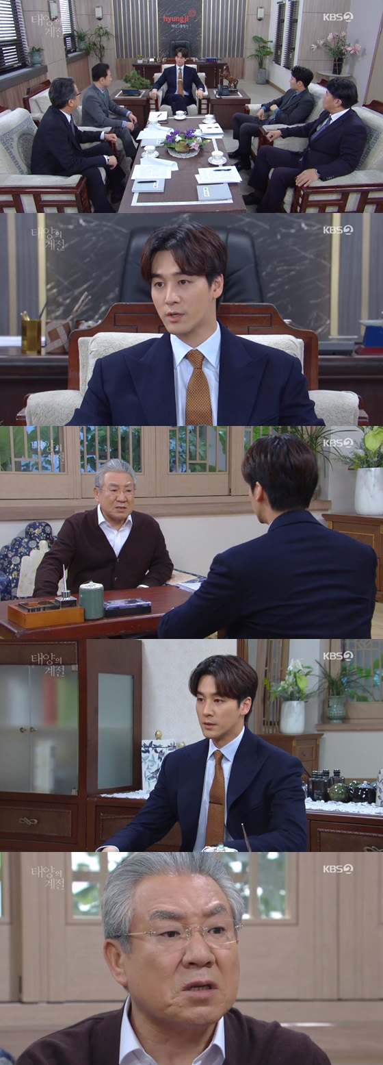 드라마 '태양의 계절'의 오창석이 양지그룹의 변화를 선포해 정한용의 심기를 건드렸다.