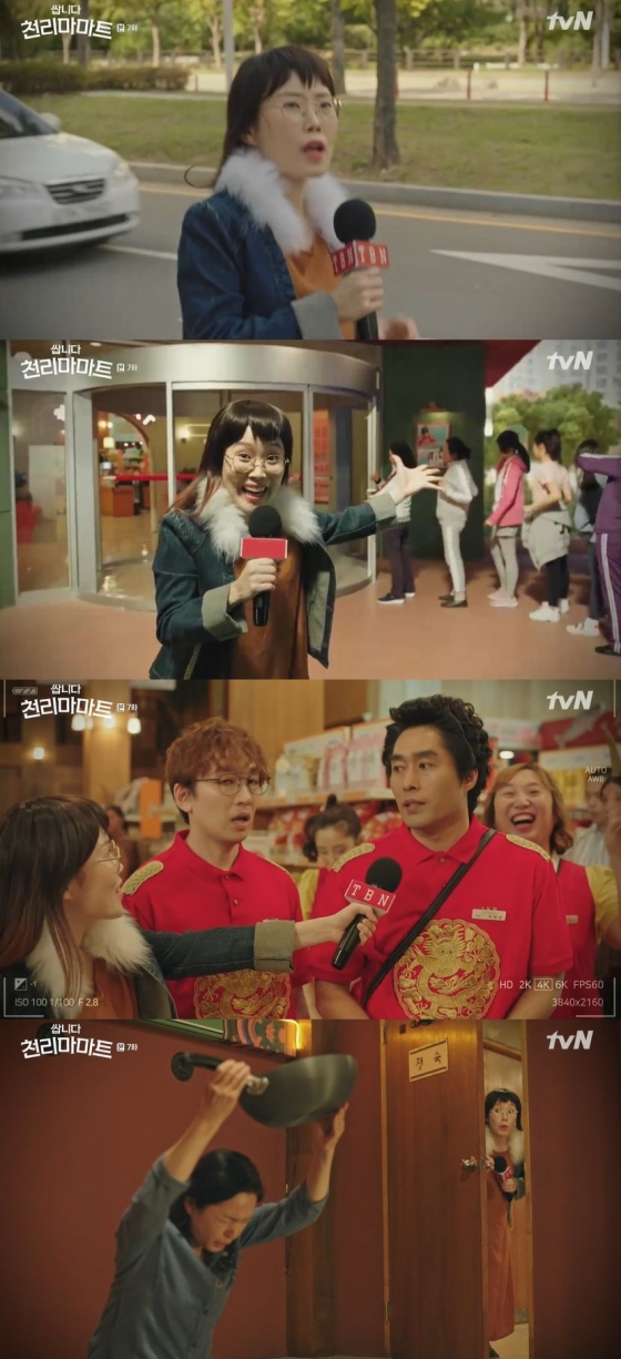 1일 오후 방송된 tvN 금요드라마 '쌉니다 천리마마트'(극본 김솔지, 연출 백승룡)에서는 천리마마트를 찾은 리포터(박슬기 분)의 모습이 담겼다.