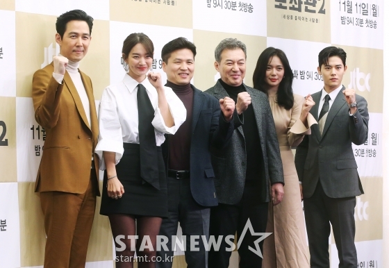 7일 오후 서울 마포구 상암동 스탠포드호텔 그랜드볼룸에서 JTBC 월화드라마 '보좌관 시즌2'(극본 이대일, 연출 곽정환, 이하 '보좌관2') 제작발표회가 열렸다. 이날 곽정한 감독, 배우 이정재, 신민아, 이엘리야, 김동준, 김갑수가 참석했다.