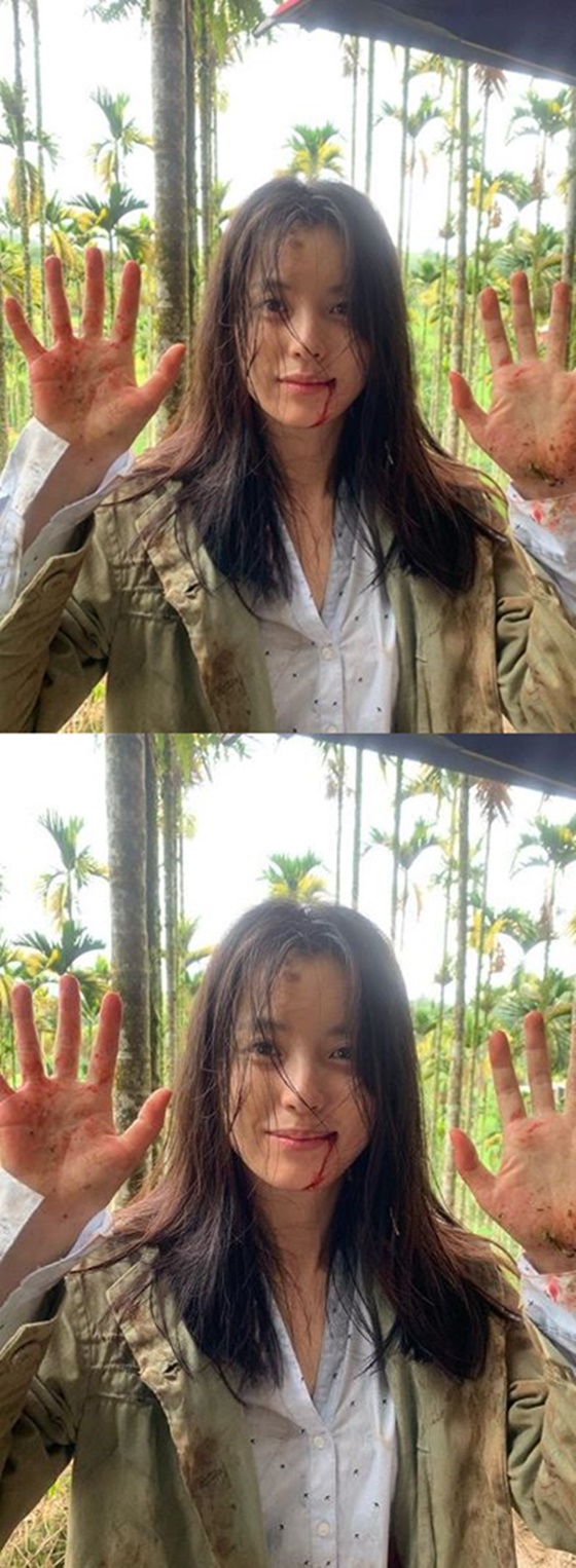 배우 한효주가 입술에 피를 묻힌 파격 분장을 공개했다.