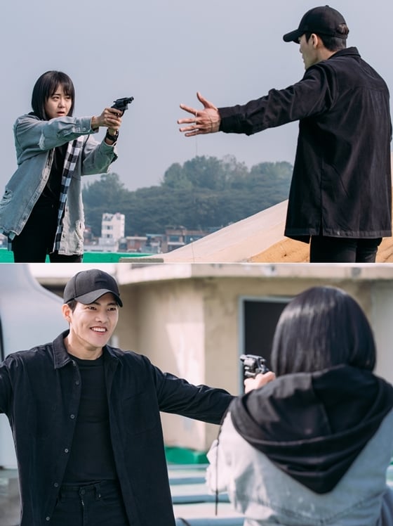 9일 tvN 월화드라마 '유령을 잡아라'(극본 소원·이영주, 연출 신윤섭, 제작 로고스필름, 기획 스튜디오드래곤) 측은 이날 15화 방송에 앞서 옥상에서 지하철 유령 김이준(김건우 분)과 총격전을 벌이는 유령(문근영 분)의 모습을 공개했다.