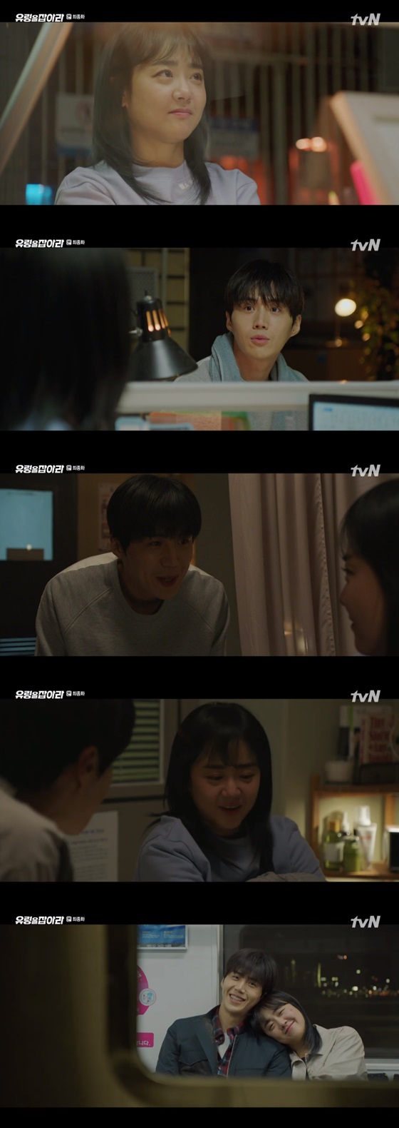 다음 날, 고지석은 에스컬레이터 타면서 손을 내밀었고, 유령은 무심한 듯 손을 잡았다. 설레는 연애가 시작된 것. 퇴근길 지하철에서 "아무리 남친이라도 제 일까지 터치하는 건 싫다", "아무리 여친이어도 하극상은 못 봐준다"라고 말하는 등 티격태격 다투는 것은 여전했다. 유령은 자신을 걱정하는 고지석에게 다가가 어깨에 기댔고 고지석은 그런 유령을 쓰다듬으며 화해했다.
