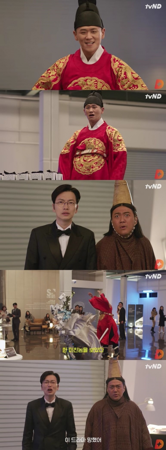 13일 오후 tvN D STORY를 통해 공개된 '쌉니다 천리마마트'의 스핀오프 웹드라마 '부릉부릉 천리마마트'에서는 상을 뒤집어 엎는 오인배(강홍석 분)의 모습이 담겼다.