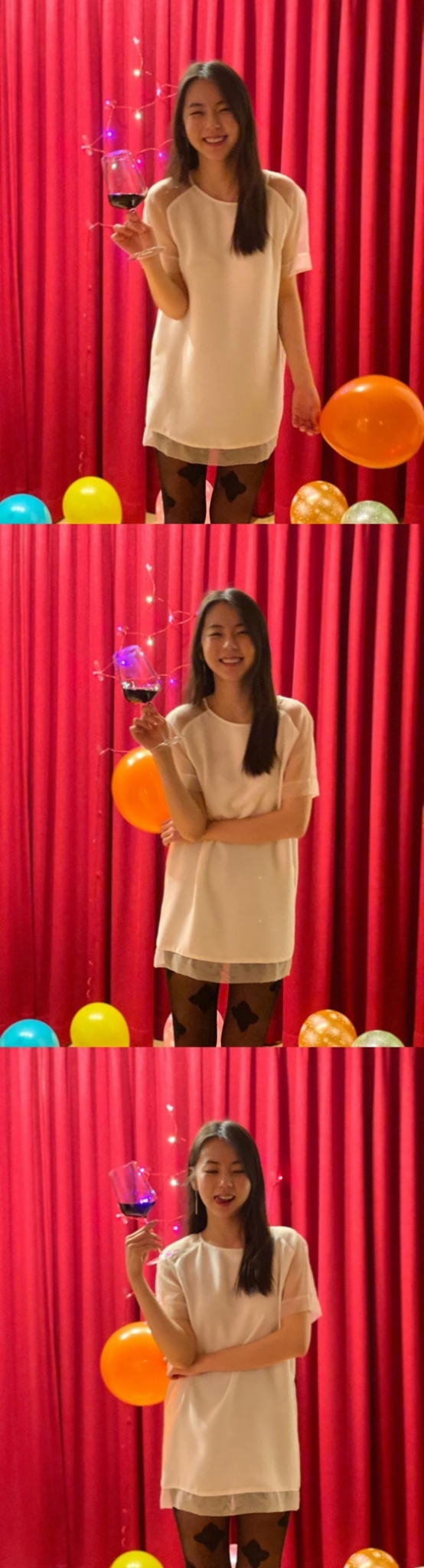 공개된 사진 속 안소희는 한 손에는 와인 잔, 다른 한 손에는 풍선을 든 채 얼굴 가득 피어오르는 웃음을 드러내고 있다.