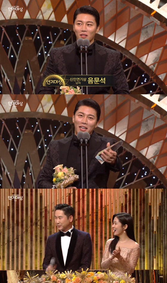 이날 방송에서 음문석은 '열혈사제'로 신인연기상 남자상을 수상했다. 그는 "처음이라 이상하다"며 입을 뗀 후 "저를 이자리에 있게 해주신 영원한 캡틴 이명우 감독님 감사하다"며 '열혈사제'의 스태프들과 배우들의 이름을 언급하며 공을 돌렸다.