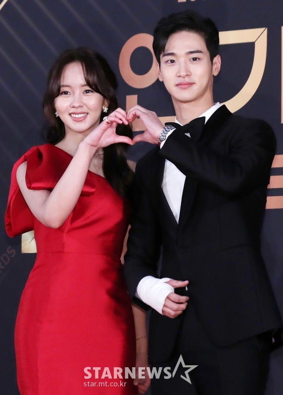 배우 김소현, 장동윤이 31일 오후 서울 영등포구 KBS 신관홀에서 진행된 KBS 연기대상 레드카펫에 참석해 포즈를 취하고 있다. / 사진=김휘선 기자 hwijpg@