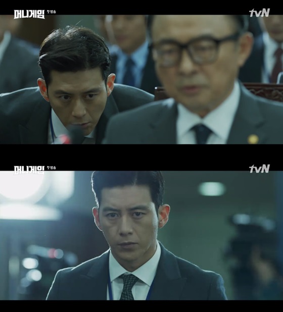 15일 오후 첫 방송된 tvN 수목드라마 '머니게임'(극본 이영미, 연출 김상호)에서는 국정감사장에서 현 금융위원장의 부족함이 드러나는 발언을 해 선배들에게 혼나는 채이헌(고수 분)의 모습이 그려졌다.