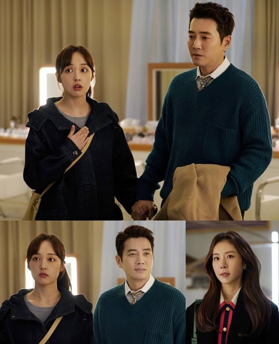 백지윤 앞에서 한수연의 손을 꼭 잡고 있는 차정혁의 모습, 그런 둘을 질투 가득한 표정으로 바라보고 있는 백지윤의 눈빛은 극에 팽팽한 긴장감을 더하고 있다. 과연 이 세 사람의 관계는 앞으로 어떻게 흘러가게 될지 궁금증을 높인다.